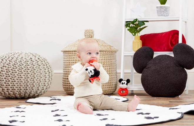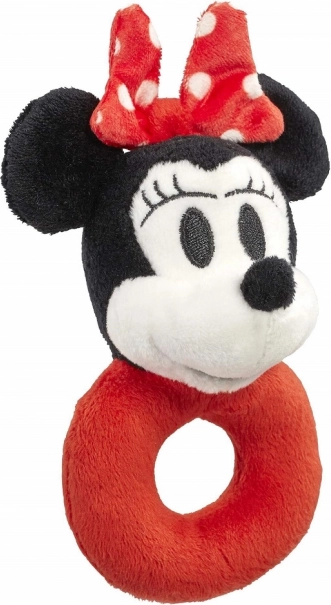 Roztomilé plyšové chrastítko MINNIE s měkoučkým kroužkem do ručičky potěší každé miminko od narození. Vyrobené z jemné kvalitní plyše v černo‑bílo‑červeném stylu, obsahuje jemné chrastítko pro smyslové podněty a podporu jemné motoriky, uchopování a třesení.