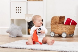 Hmatové uzlíky v rozích a ikonická ušička podporují rozvoj jemné motoriky a zvídavost nejmenších.