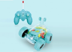 Zábavné RC auto s transparentním zeleným šasi ukazuje pohyblivé převody a nabízí 360° otočení ve stoje, kaskadérské kousky, světelné a zvukové efekty a snadné ovládání vpřed/vzad i doleva/doprava. Dosah ovladače až 10 m, maximální rychlost 5 km/h.
