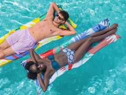 Matrace v živém tropickém designu přináší barevnou náladu do každého odpočinku u vody.