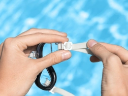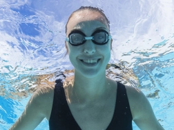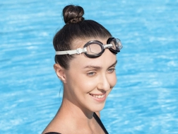 Odolné čočky zajišťují jasný výhled pod vodou a chrání zrak před sluncem na venkovních bazénech.