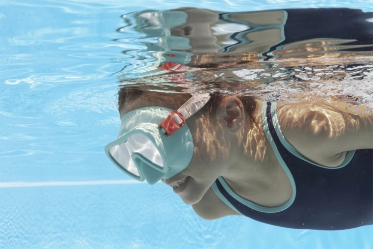 Měkký silikon jemně přilne k obličeji dítěte, zvyšuje komfort a pomáhá omezit pronikání vody. Ideální pro delší hraní i učení plavat.