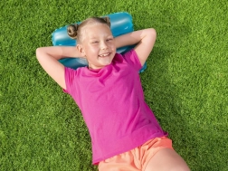 Polštářek je vybaven bezpečnostním ventilem, který brání samovolnému unikání vzduchu. Ergonomické žebrování na povrchu zvyšuje pohodlí při ležení i sezení. Během dne poslouží jako měkká podložka, v noci jako praktický polštář na spaní – bez nutnosti používat pumpičku.