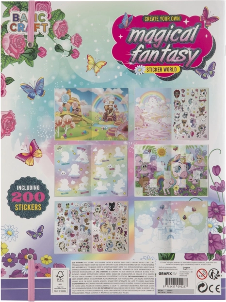 Tato magická fantasy kniha se samolepkami nabízí barevné ilustrace, na které děti lepí přiložené samolepky. Díky 200 samolepkám mohou vytvářet vlastní příběhy a oživovat scény podle své fantazie – bez potřeby dalších pomůcek.