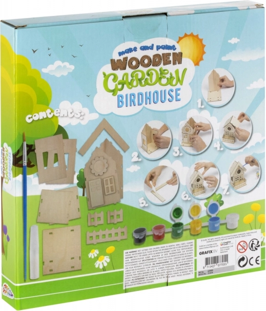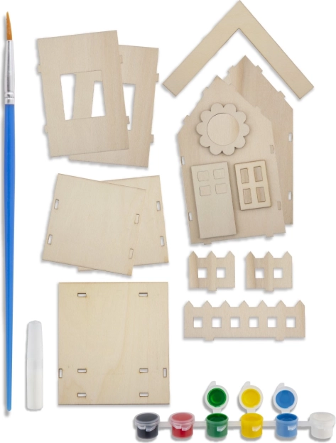 Vytvořte si vlastní ráj pro ptáčky s touto kreativní sadou. Dřevěný ptačí domeček 3D snadno sestavíte a vyzdobíte přiloženými barvami. Součástí balení je domeček ze dřeva, 6 barev, lepidlo a štětec – vše, co potřebujete pro zábavné tvoření na zahradě i doma.