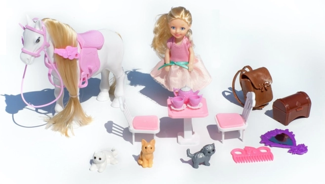 - Kompletní výbava: panenka, koník, koťátka, nábytek a doplňky