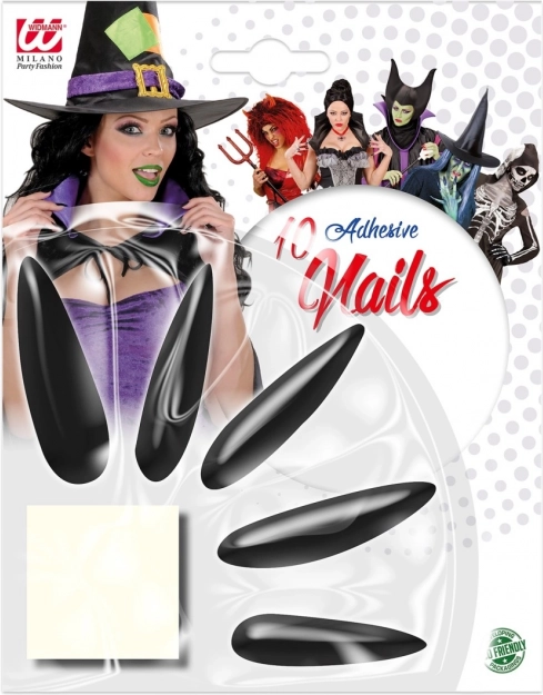 Sada 10 dlouhých čarodějnických nalepovacích nehtů vám dodá tajemný a dramatický vzhled. Nezbytný doplněk pro každou čarodějnici!