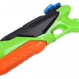 Tato pumpovací vodní pistole je skvělou volbou pro akční vodní bitvy. Stačí naplnit nádrž, párkrát napumpovat a můžete vypustit dlouhý a soustředěný proud vody. Odolné plastové provedení a promyšlený tvar zaručují pevný úchop a komfort i při delším hraní.