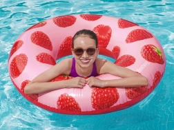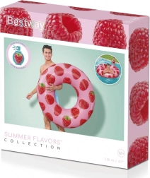 Vůně zralých malin, hravý design a pohodové lenošení na vodě – tento nafukovací kruh Bestway přináší do každého koupání dotek léta. Jemně parfémovaný materiál potěší smysly bez toho, aby byl příliš výrazný, a malinový potisk zaujme na první pohled i čich.