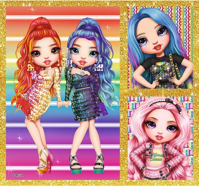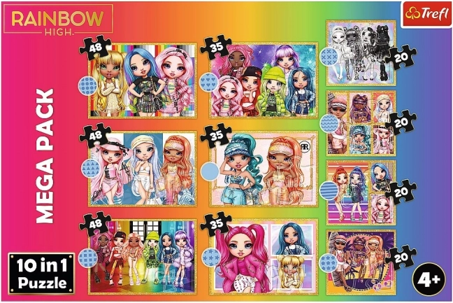 Balíček obsahuje pestrou směsici puzzle pro malé i větší skládače: čtyři puzzle po 20 dílcích, tři puzzle po 35 dílcích a tři puzzle po 48 dílcích. Každý motiv z populárního světa Rainbow High přináší zářivé barvy a radost z dokončeného obrázku.