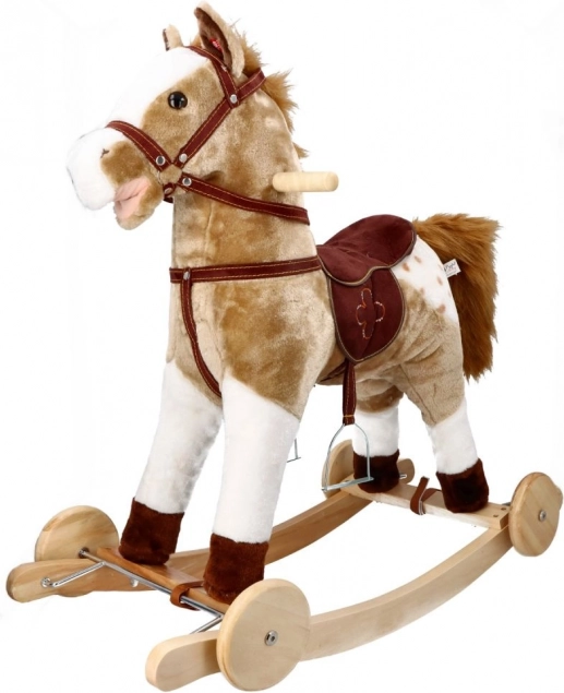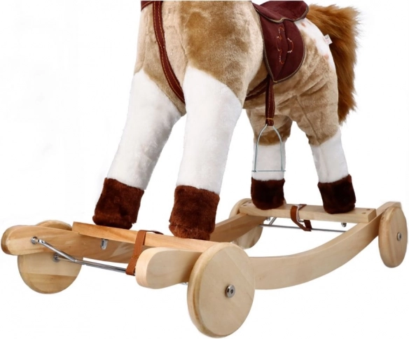 Dětský houpací kůň Mustang s kolečky nabízí realistický zážitek z jízdy pro malé dobrodruhy. Díky kombinaci dřeva a textilu je kůň jak pevný, tak i měkký.