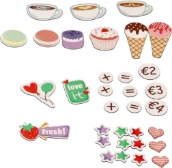 - Realistická kavárna a zmrzlinový pult – knoflíky, tlačítka a doplňky pro přípravu „kávy“, dezertů a kopečků zmrzliny.
