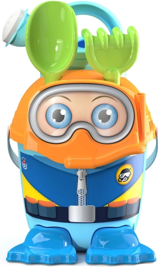 Objevte zábavu na pláži i pískovišti se 7dílnou sadou na písek s motivem potápěče. Vyrobeno v Itálii z kvalitních plastů, které jsou odolné a bezpečné pro děti od 12 měsíců. Praktický kyblík s průměrem 18 cm, originální sítko ve tvaru potápěčské hlavy a tvořítka ve tvaru ploutví zaručí spoustu kreativní zábavy. Lehká konstrukce (0,371 kg) a kompletní výbava včetně konvičky, lopatky a hrabiček.