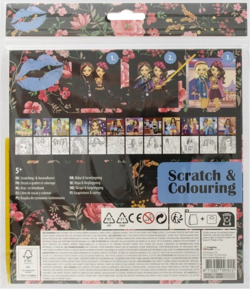 Tato stylová kreativní sada kombinuje scratch art a omalovánky s módními motivy kamarádek. Děti mohou plastovým perem vyškrabávat překryvnou vrstvu a odhalovat zářivé barvy, nebo vybarvovat předlohy podle vlastní fantazie. Zábava, která rozvíjí představivost a podněcuje smysl pro detail.