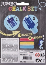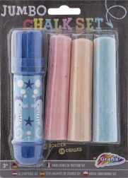 Užijte si kreativní malování venku s těmito chodníkovými křídami jumbo v balení 3 ks a praktickým držákem pro čisté ruce. Ideální pro děti i dospělé, nabízí jasné barvy a snadné stírání vodou.