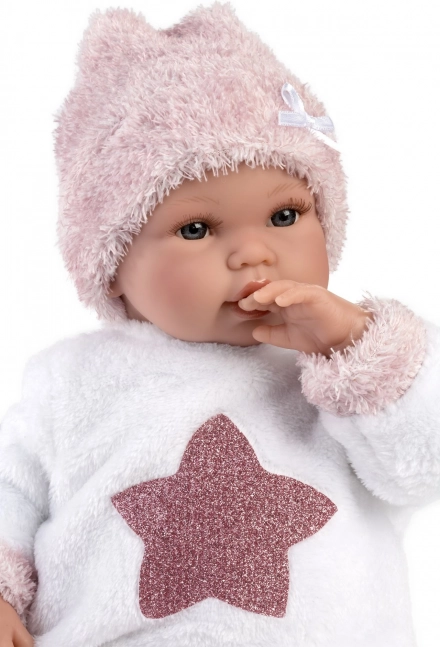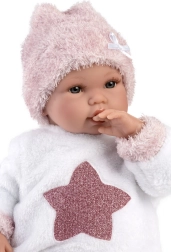 Díky kloubově uchyceným ručkám a nožičkám je panenka polohovací a zvládne i stabilní sezení. Součástí je doplňkový dudlík a baterie pro okamžité hraní. K panence snadno dokoupíte originální oblečky LLORÉNS pro velikost 35–36 cm.