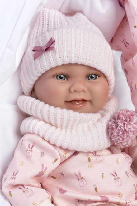 Tato realistická panenka Llorens New Born holčička přináší věrné provedení dětského miminka s celovinylovým tělem, na kterém je vidět každý roztomilý detail. Díky voděodolnému materiálu lze panenku opatrně koupat (vyhněte se namočení řas). Ruce a nohy jsou uchyceny klouby, takže je panenka polohovací a může i samostatně sedět.