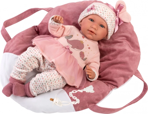 Roztomilé miminko Llorens NEW BORN o velikosti 42 cm má měkké látkové tělo, realistické rysy a po stisknutí hrudníčku říká „mama“, „papa“ a vydává zvuky plačícího miminka. Díky kloubovým končetinám je polohovací a umí i sedět. Ručně vyrobeno ve Španělsku, baleno v dárkové krabici.