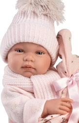 Panenku je možné opatrně koupat (vyhněte se namočení řas). Součástí je dudlík jako dekorativní doplněk a hebké textilní oblečení v jemných růžových tónech. Panenka je ručně vyrobená ve Španělsku a přichází v elegantní dárkové krabici – ideální jako dárek.