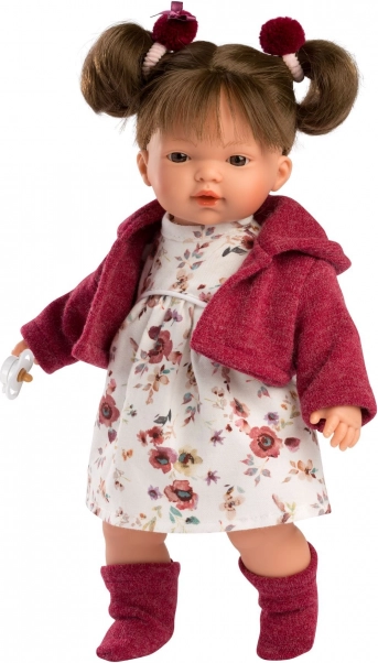 Obleček pro panenku Llorens – květinové šaty s kabátkem a doplňky, 33 cm