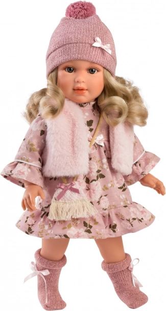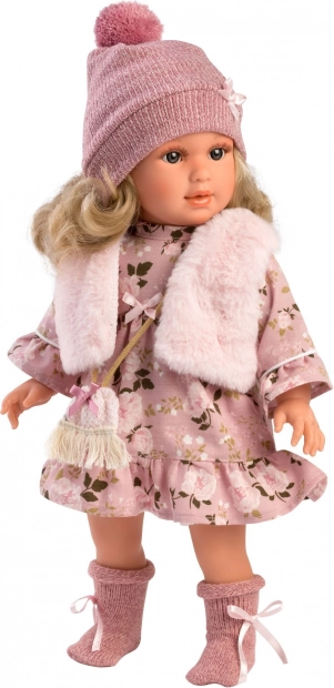 Součástí setu je také stylový klobouk s bambulí, šála a malá kabelka, které dotváří celkový outfit.