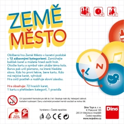 Roztočte mozkové závity se svižnou párty hrou Země město od značky Dino. Hráči bleskově hledají slova podle zadané kategorie, barvy a počátečního písmene. Trénuje postřeh, slovní zásobu a paměť, je ideální pro rodiny i partu přátel a díky kompaktnímu balení je skvělá na cesty.