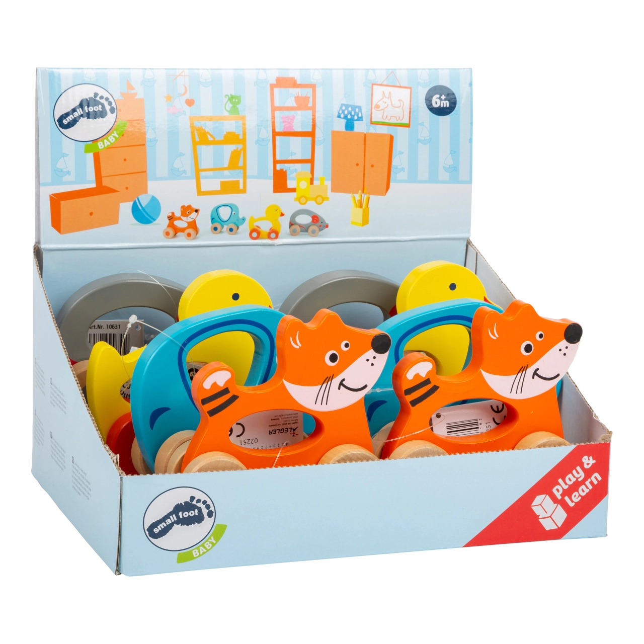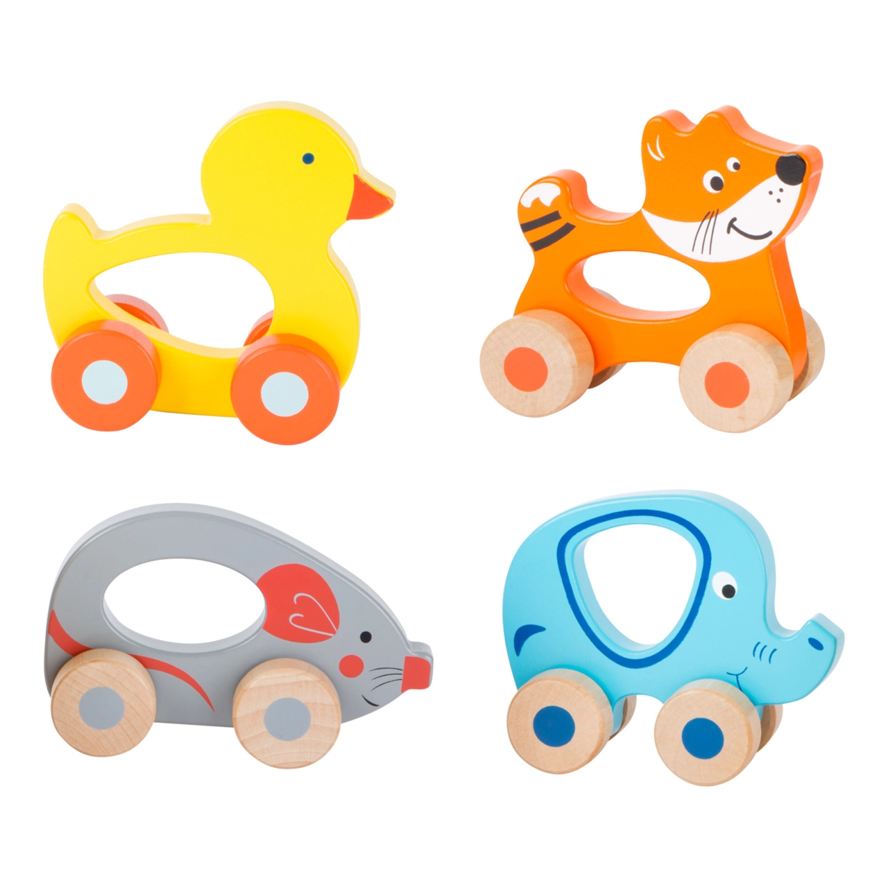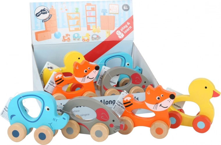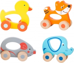 Slon, liška, myš a kachnička – barevná zvířátka na kolečkách, která děti hned zaujmou.
