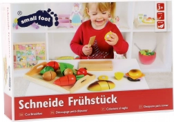 Součástí je tác, prkénko, nůž a výběr pečiva a zeleniny. Děti mohou připravit, nakrájet i servírovat vlastní snídani – vše na jednom místě.