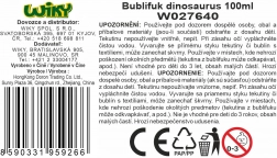 Rozprouděte každou zahradní slavnost, dětskou párty nebo odpoledne na hřišti s bublifukem dinosaurus. Praktické balení s objemem 100 ml zajistí dlouhou výdrž a snadné foukání velkých i malých bublin.