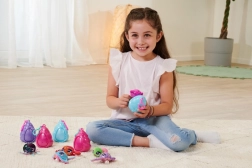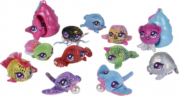 Každá mušle má posuvná dvířka, za nimiž čeká překvapení – plyšové zvířátko, u některých navíc s kouzelnou perlou. Série nabízí více druhů mořských tvorů (např. želvičky, rybky, chobotničky či tuleňi) v pestrých barvách a s glitrovými efekty. Různé varianty – výběr není možný, produkt odesíláme náhodně, cena platí za 1 kus.