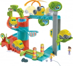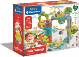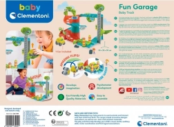 Tato barevná zábavná garáž CLEMENTONI BABY nabízí dětem nekonečné množství akce a objevování. Dráha je navržena tak, aby autíčko klouzalo dolů, dělalo legrační kotrmelce a pomocí ručního výtahu se vracelo zpět na start – zábava tak nikdy nekončí.
