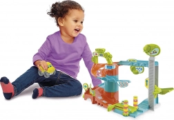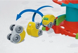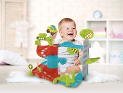 Autíčko se při sjíždění dráhy legračně převrací a dělá kotrmelce, čímž podněcuje dětskou zvídavost a radost z objevování.