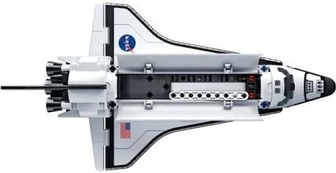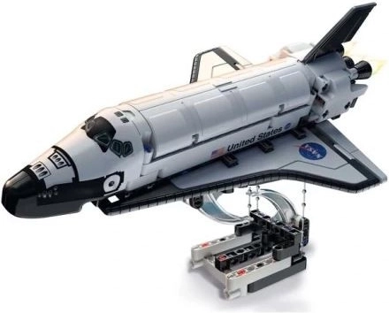 Chytré napnutí a rozložení sil vytváří dojem, že se raketoplán vznáší. Ohromující vizuální prvek pro každou poličku či pracovní stůl.