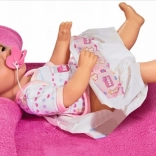 Interaktivní panenka New Born Baby vyniká realistickým vzhledem a funkcemi, které dětem umožní zažít skutečnou péči o miminko. Panenka umí pít z lahvičky a poté si dojít na nočník, má pohyblivá víčka a je oblečena do měkkých dupaček s roztomilým motivem a růžové čelenky s mašlí.