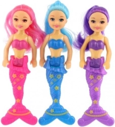 Panenka je dostupná ve 3 barevných variantách (růžová, modrá, fialová) s detailně zdobeným ocasem a výraznými vlásky. Díky velikosti 15 cm se snadno vejde do batůžku a je ideální na cesty, do vany i do dětského pokojíčku.