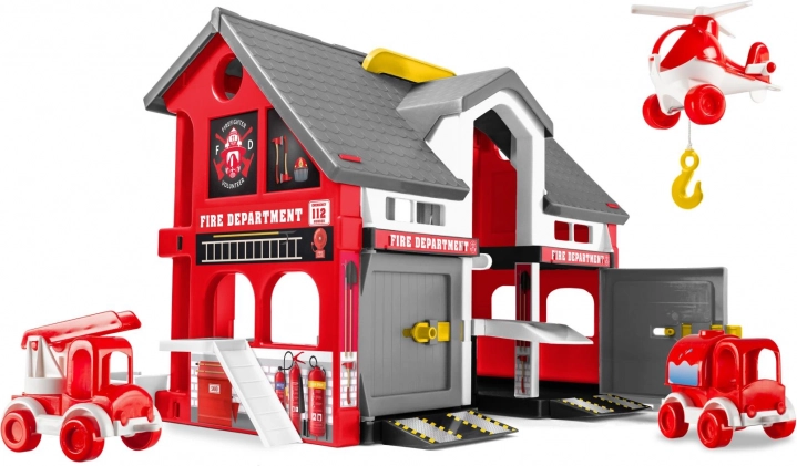 Dvoupatrový domek – hasičská stanice ze série Play House věrně napodobuje skutečnou záchranářskou základnu s nájezdy pro vozy, prostorným hangárem, transportním výtahem a patrem pro službu konajícé hasiče. Součástí je také hasicí helikoptéra. Díky odolné konstrukci a bezpečným materiálům je ideální pro každodenní hraní dětí od 3 let.