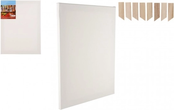 Rám je vyroben z kvalitního borového dřeva, což zajišťuje stabilitu a trvanlivost. Součástí balení je také sada 8 dřevěných vypínacích kolíků, které umožňují dodatečné napnutí plátna.