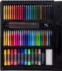 Sada obsahuje fixy, pastelky a olejové pastely ve široké škále barev - ideální pro každého, kdo rád experimentuje s barvami.
