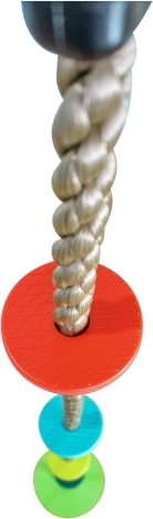 Lano obsahuje barevná plastová stupátka, která pomáhají dětem zafixovat svoji polohu a šplhání se stává bezpečnější a zábavnější.