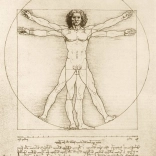 - Detailní motiv – legendární Vitruviánský muž v ostrém a věrném tisku.