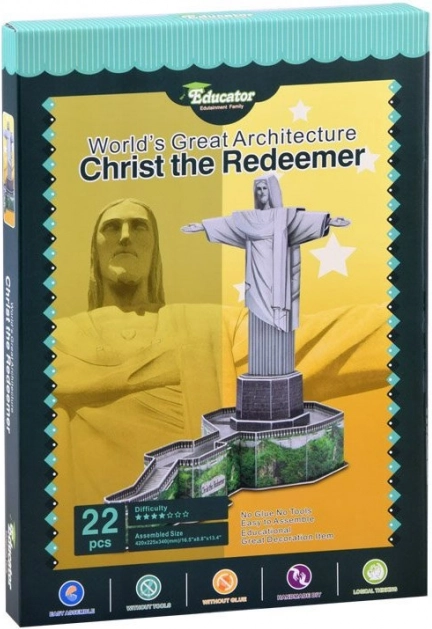 Objevte radost z tvorby s 3D puzzle, které věrně zobrazuje slavnou Sochu Krista Spasitele nad brazilským městem Rio de Janeiro. Díky precizně vyřezaným dílkům z 3mm pěny potažené laminovaným potištěným papírem získáte pevný a estetický model, který skvěle vypadá v každé místnosti.