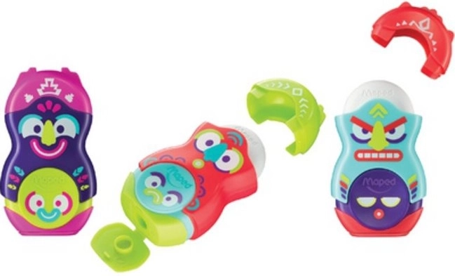 Oživte penál dětí i tvořivých dospělých. Ořezávátko MAPED Loopy Totem kombinuje přesné ořezávání tužek a pastelek s praktickou gumou bez PVC. Integrovaná nádobka na hobliny udržuje pořádek na lavici i v tašce.
