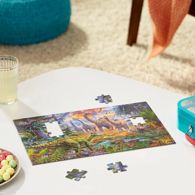 Každé puzzle nabízí jiný scéna z prehistorického světa, různé druhy dinosaurů jsou vyobrazeny v detailně propracovaných ilustracích.